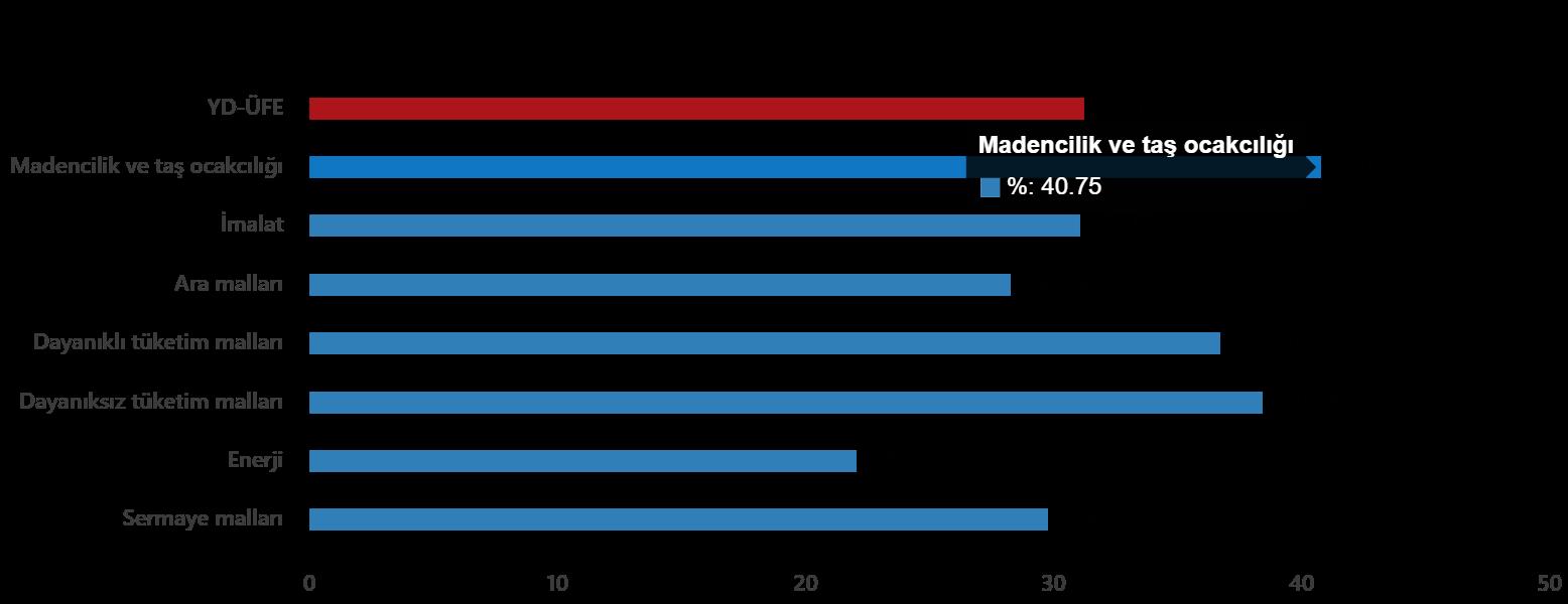 Sektörlere nazaran YD-ÜFE yıllık değişim oranları (%), Kasım 2025