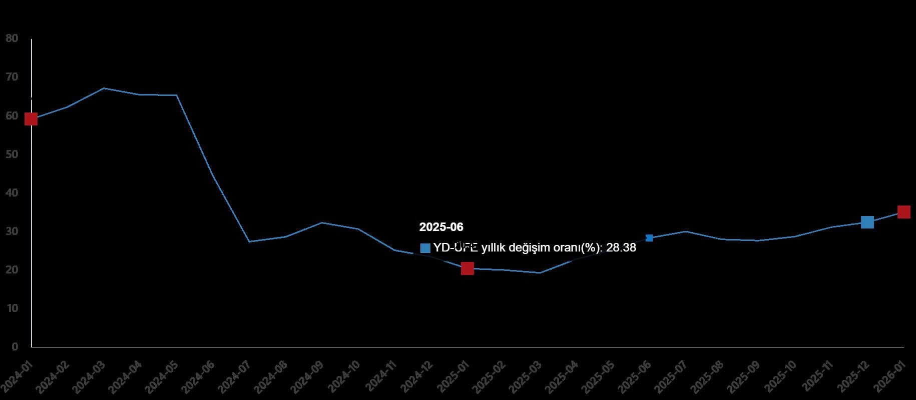 YD-ÜFE yıllık değişim oranları (%), Ocak 2026
