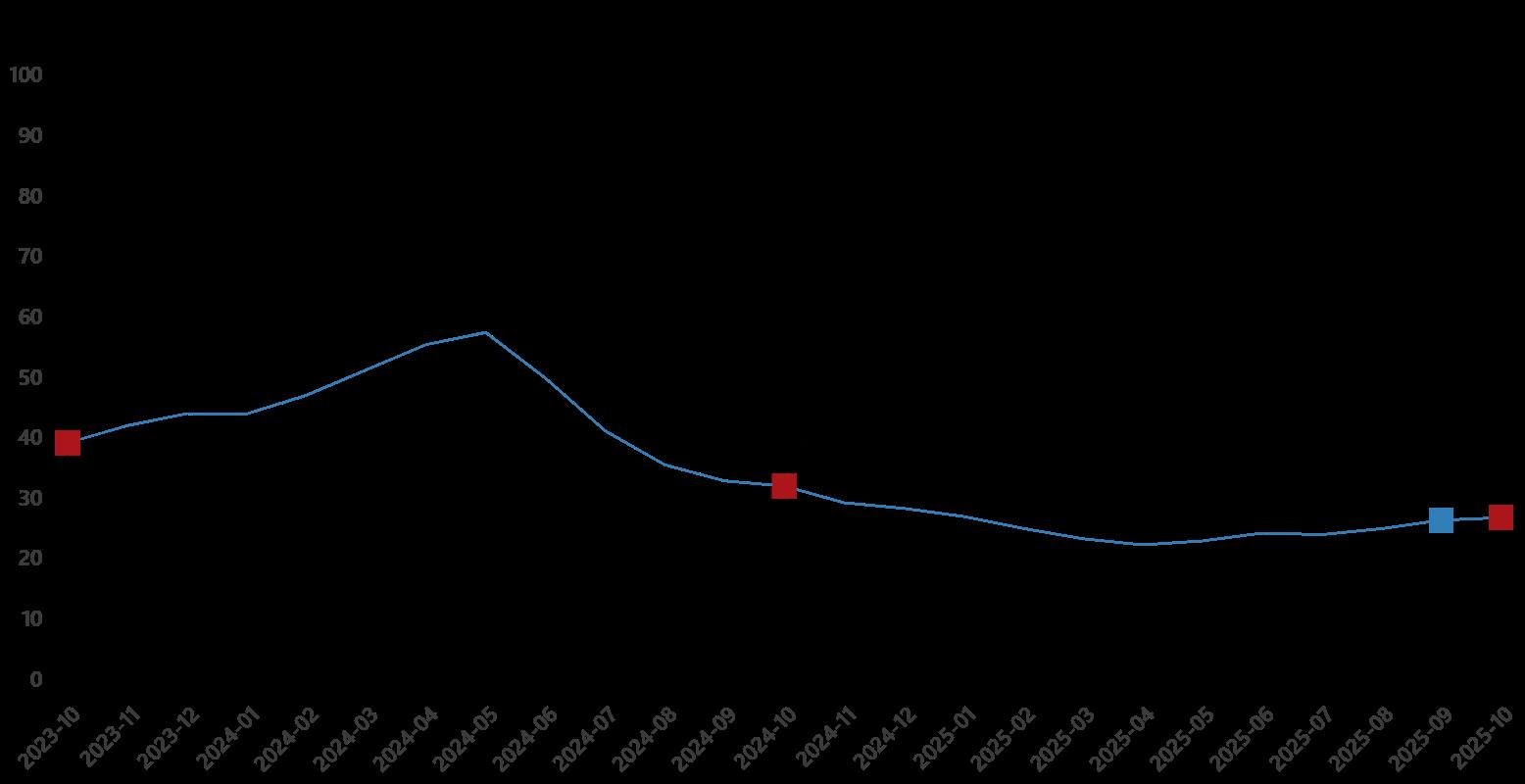 Yİ-ÜFE yıllık değişim oranı(%), Ekim 2025