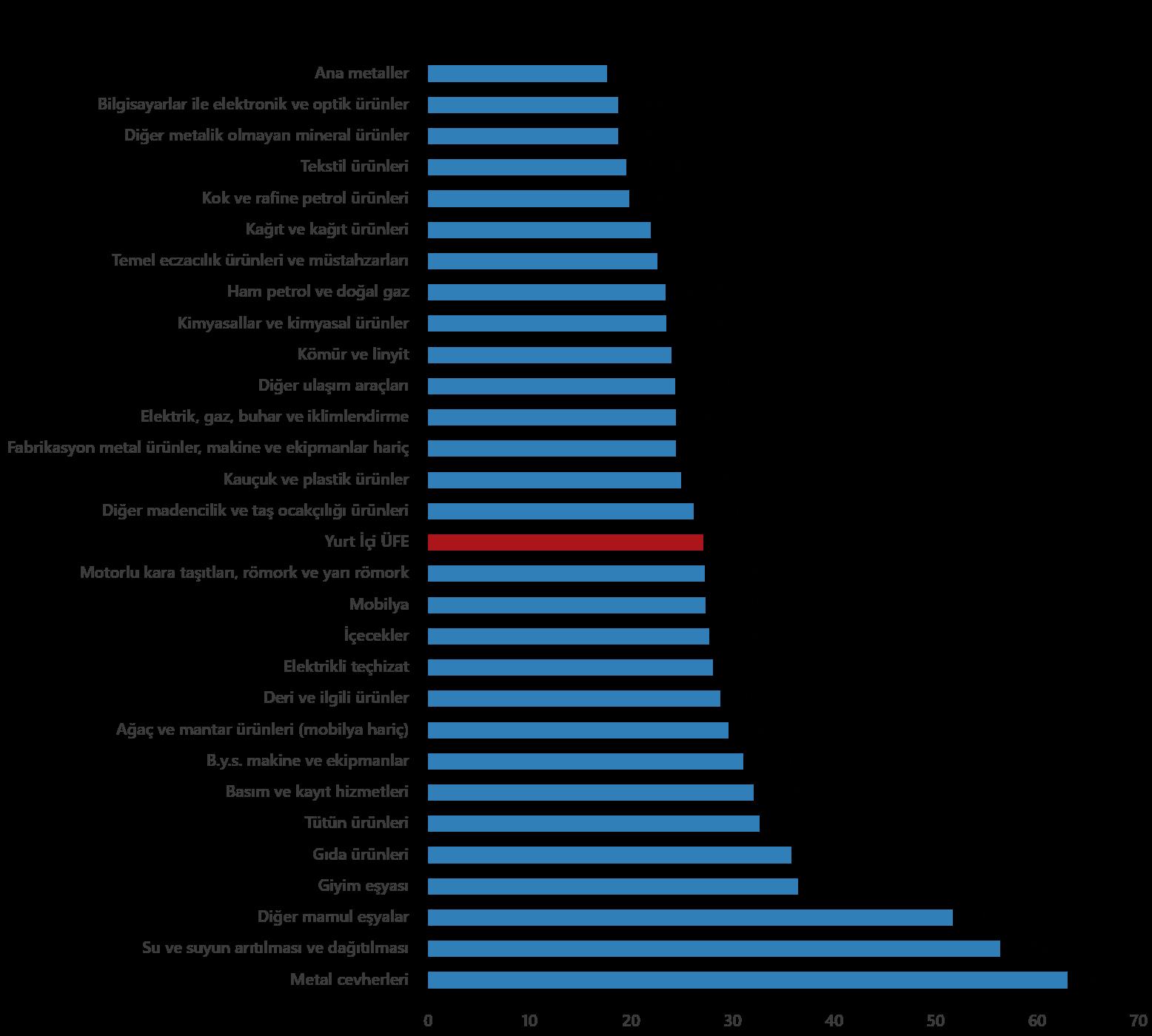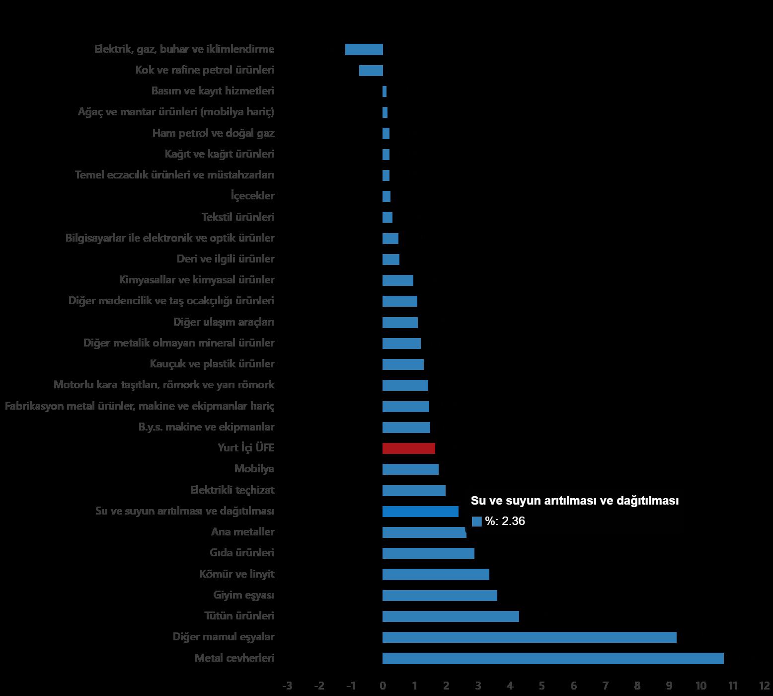 Sanayinin dört bölümünün yıllık değişimleri; madencilik ve taş ocakçılığında %31,79 artış, imalatta %26,91 artış, elektrik, gaz üretimi ve dağıtımında %24,31 artış ve su temininde %56,26 artış olarak gerçekleşti.
