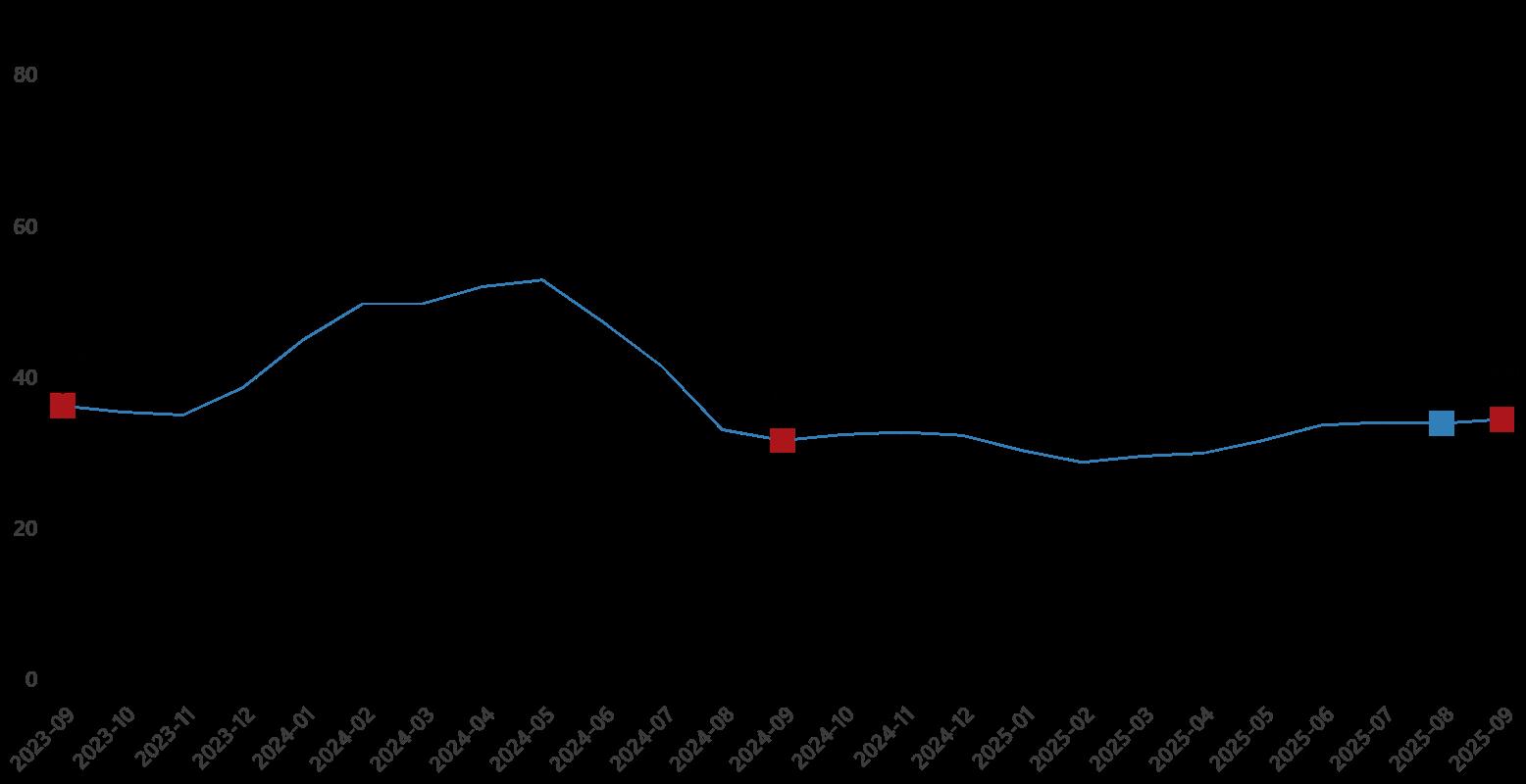 Tarım-GFE’de (2020=100), 2025 yılı Eylül ayında bir evvelki aya nazaran %2,16 artış, bir evvelki yılın Aralık ayına nazaran %26,48 artış, bir evvelki yılın birebir ayına nazaran %34,60 artış ve on iki aylık ortalamalara nazaran %32,19 artış gerçekleşti.