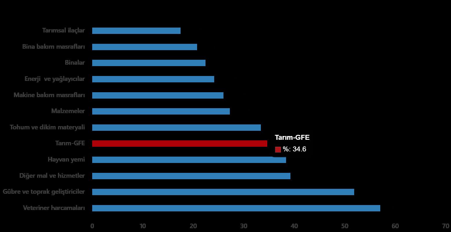 Yıllık değişimin en yüksek olduğu alt küme %56,97 artış ile veteriner harcamaları, aylık değişimin en yüksek olduğu alt küme %6,76 artış ile tohum ve dikim gereci oldu.